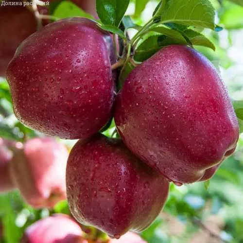 Плоды этого сорта имеют округло-коническую или коническую форму, достигают внушительных размеров и могут весить до 300 граммов. Их отличает яркая, темно-красная окраска с румянцем, который покрывает всю поверхность. На солнечной стороне плоды приобретают насыщенный красный оттенок, что делает их особенно привлекательными. Вкус яблок Ред Делишес кисло-сладкий, а мякоть нежная, зеленовато-кремовая, с высокой сочностью и внушительной хрусткостью. Плоды обладают приятным ароматом и содержат в своем составе до 15,5% сухих веществ и 9,5-11,8% сахаров, что делает их идеальными для употребления в свежем виде и для приготовления соков.